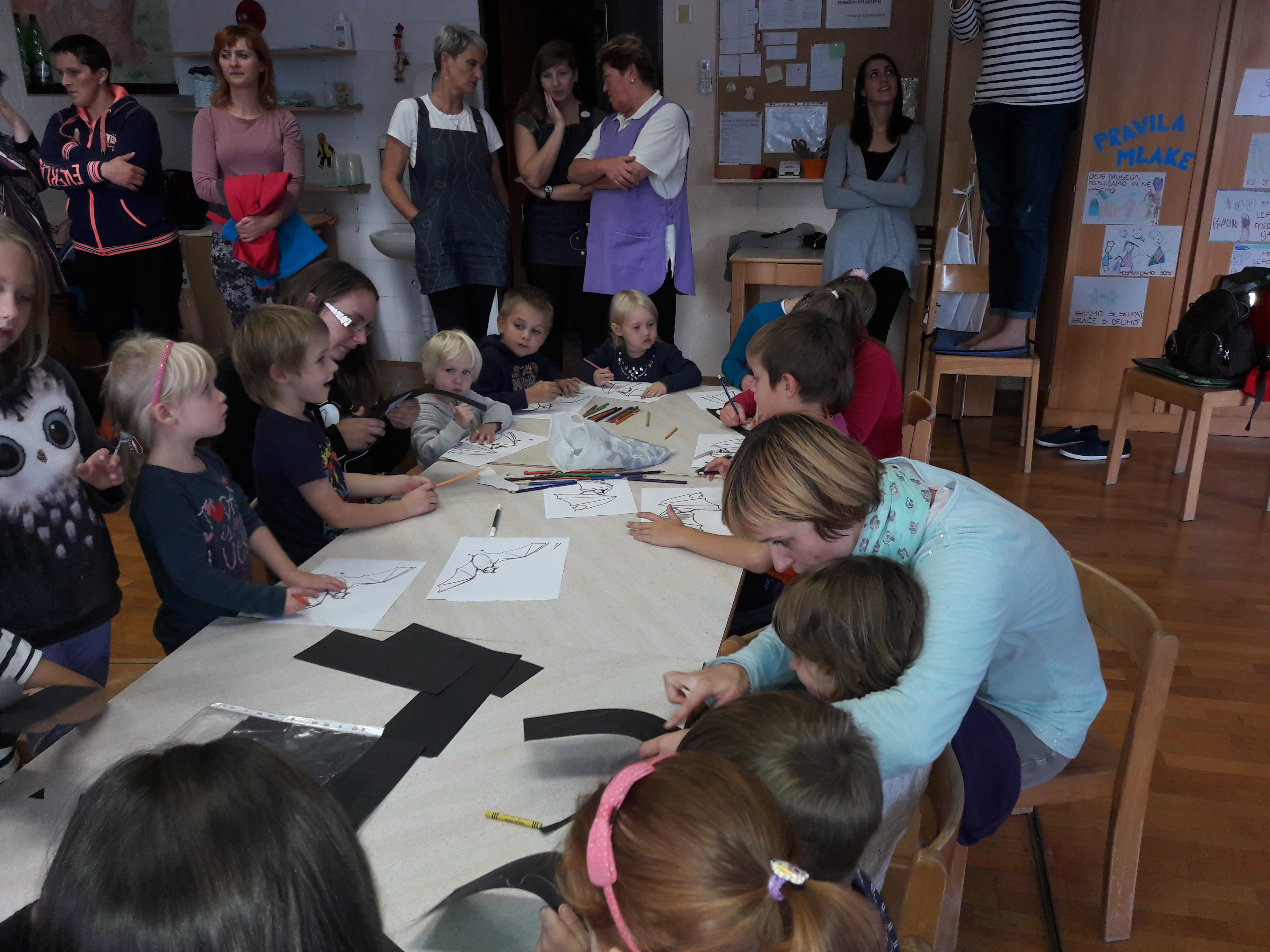 Četrtek 21. septembra je bil posvečen netopirjem. Mednarodno noč netopirjev pripravlja Zavod RS za varstvo narave (ZRSVN) in Slovensko društvo za proučevanje in varstvo netopirjev (SDPVN). Namen dogodkov je širšo javnost seznaniti in izobraževati o netopirjih, njihovih navadah in življenjskem prostoru, vlogi v ekosistemu, razbijanju predsodkov o netopirjih. Cerkev Svetega Nikolaja na Savi je pomembno kotišče netopirjev vrste navadni netopir (Myotis myotis). Eden izmed vzrokov za preganjanje netopirjev v cerkvah je tudi prisotnost netopirskega gvana, ki pa se ga da odstraniti in uporabiti kot odlično gnojilo, ki je bilo v prejšnjem stoletju zelo cenjeno. V cerkvi je bilo preštetih okoli 100 netopirjev, zato so prostovoljci v okviru dogodka počistili podstrešje cerkve V vrtcu je potekala likovno ustvarjalna delavnica, kjer so otroci izdelali svojega netopirja iz papirja, »netopirske« magnetke, zgibali origami netopirje in barvali netopirje. V pravljični urici so spoznavali dogodivščine netopirja Mračka. Sledilo je predavanje o netopirjih in za vse udeležence vodeno poslušanje oglašanja netopirjev z ultrazvočnimi detektorji. Dogodek je bil izredno zanimiv in poučen.