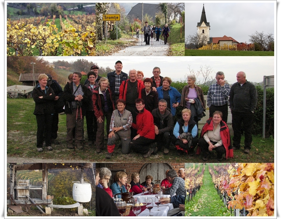 Člani planinske sekcije Sava smo se v soboto 15.11 odpravili na izlet po Sromeljski pešpoti, imenovani tudi Pot vina in sonca. Naše pohajkovanje po goricah se je pričelo v Sromljah, od koder nas je lokalni vodnik Pepi peljal naokrog po okoliških krajih mimo treh kmetij oz. zidanic. Med potjo smo tako poizkušali lokalno pridelano vino in se okrepčali z domačimi dobrotami. Kljub neobetavnemu vremenu nas je obsijalo tudi sonce ter tako upravičilo naziv poti. Izleta se je udeležilo 27 članov.
